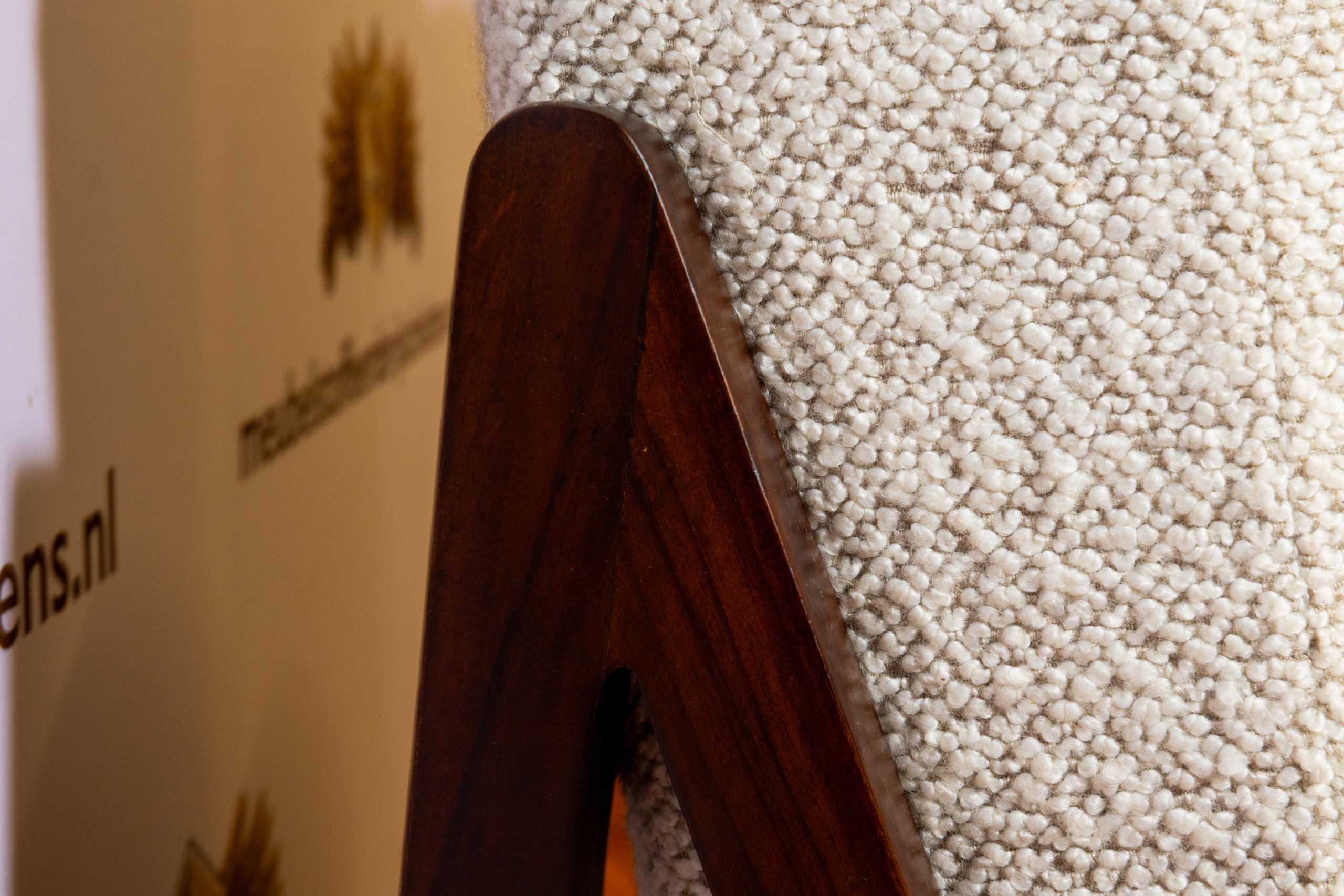 De Humbert & Poyet Théodore fauteuil is een verfijnd en luxe meubelstuk dat elegantie en comfort moeiteloos combineert. Het ontwerp wordt gekenmerkt door een prachtig frame van notenhout, dat zorgt voor een warme en tijdloze uitstraling. Deze fauteuil is door ons volledig vernieuwd, waarbij het binnenwerk met zorg is vervangen voor optimaal zitcomfort en duurzaamheid. Daarnaast is de stoel opnieuw bekleed met een hoogwaardige bouclé stof, die niet alleen zacht aanvoelt, maar ook een moderne en stijlvolle touch geeft. Het resultaat is een unieke fauteuil waarin vakmanschap en hedendaags design samenkome